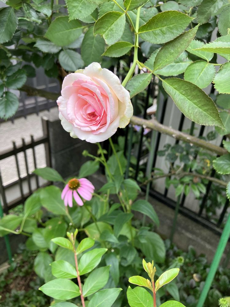 🩷ピンクのエキナセアはピエール・ド・ロンサールに守られてるのね🍀