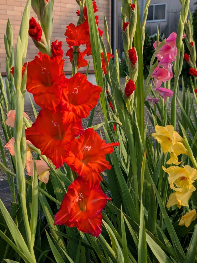 庭,グラジオラス,色とりどりのグラジオラスの投稿画像