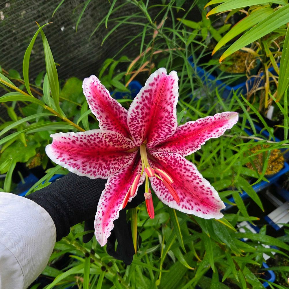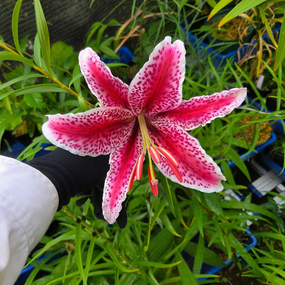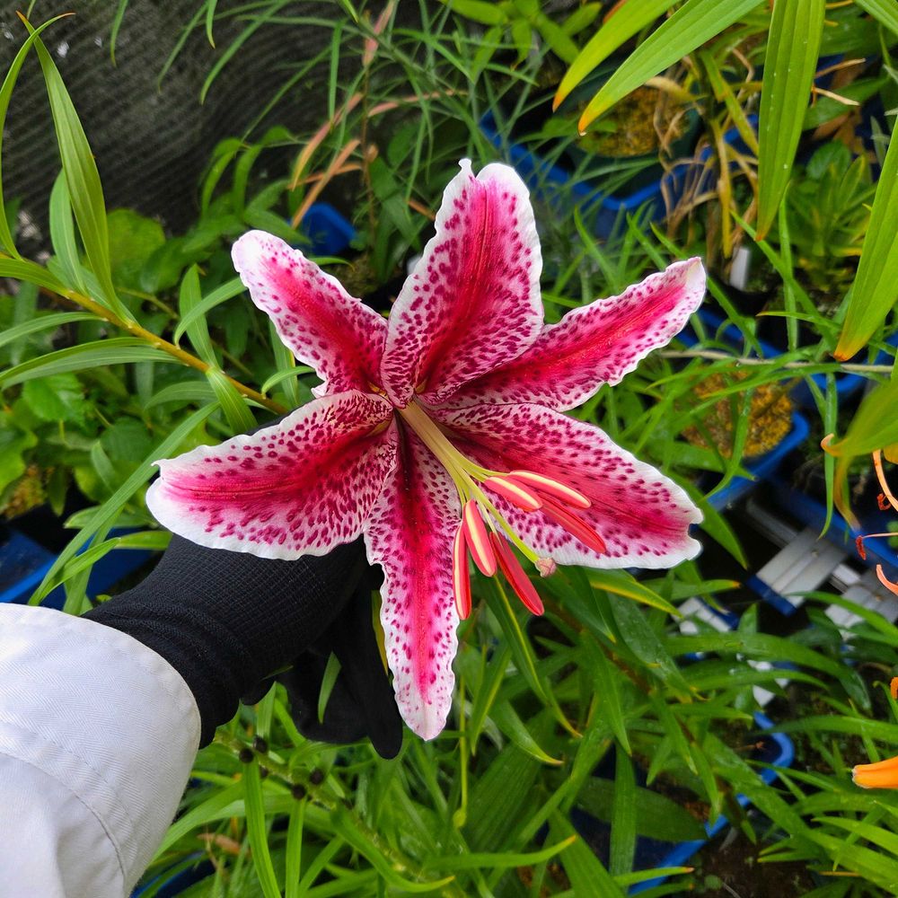 園芸品種の改良ベニスジヤマユリ(品種名 デイジー)が流通していますが、園芸品種とは比べ物にならないくらいの美しさです😍😍