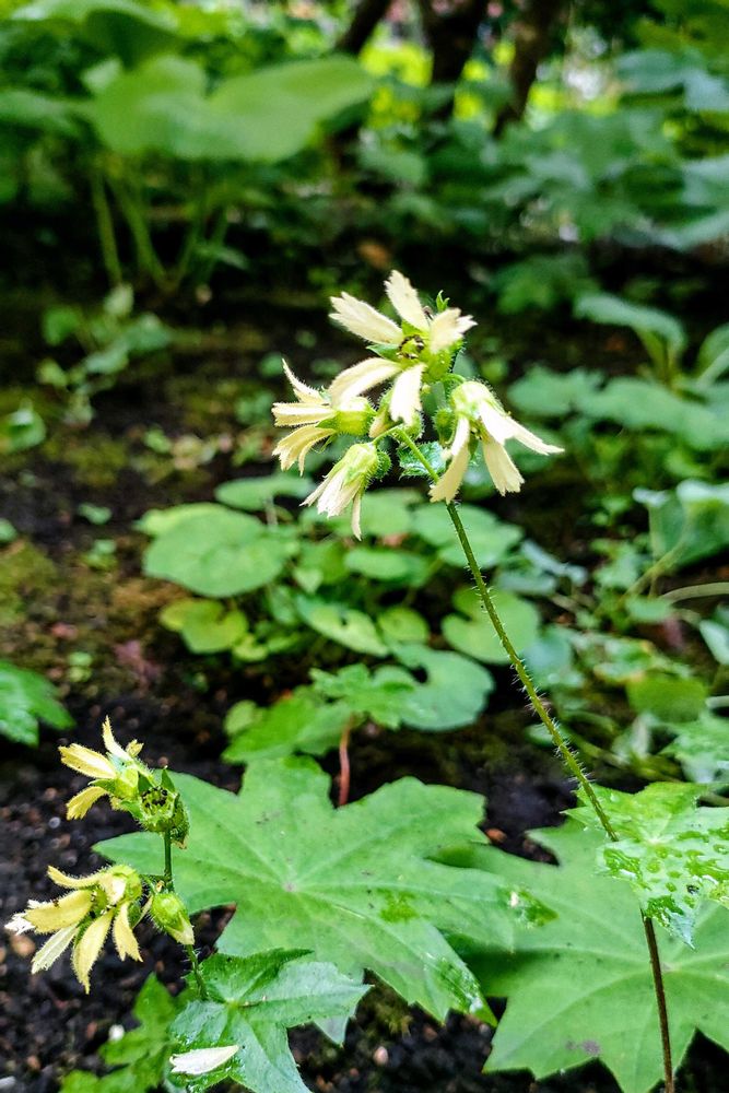 札幌六花亭の小さな庭に北海道の自然を感じていたら、足元に目立たない小さな花。