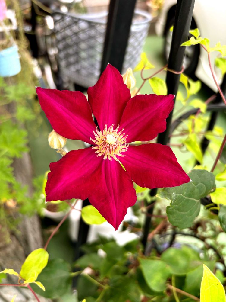 三種混合クレマチスの中のレッドクーラーが2度目のお花を咲かせました やっぱり小ぶりですね