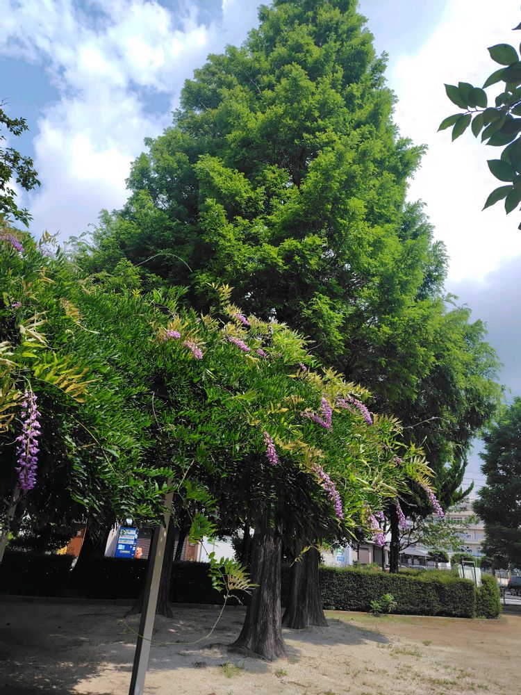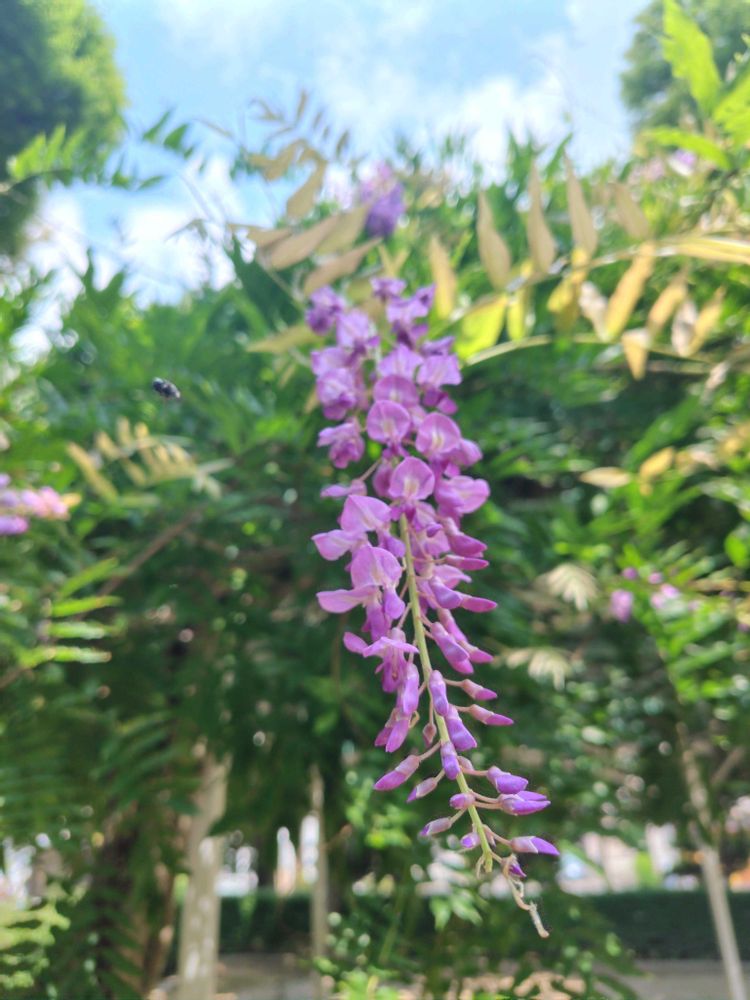 通りすがりに紫色のお花が目に入り…公園を覗いてみたら…季節外れの藤の花が咲いてました😆💜💜