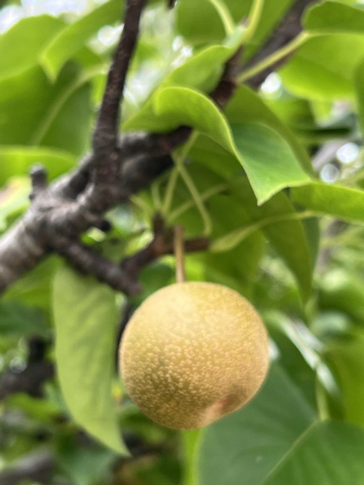 一枚目のようにたくさんの梨がなっていると、落としたくなります(笑)