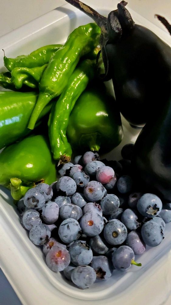 4️⃣家庭菜園初収穫·なす·ピーマン·シシトウ·ブルーベリー
