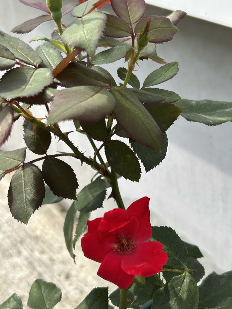 見切り品のノックアウトもやっと一つ咲きました🌹今はダブルノックアウトが主流なんでしょうか?