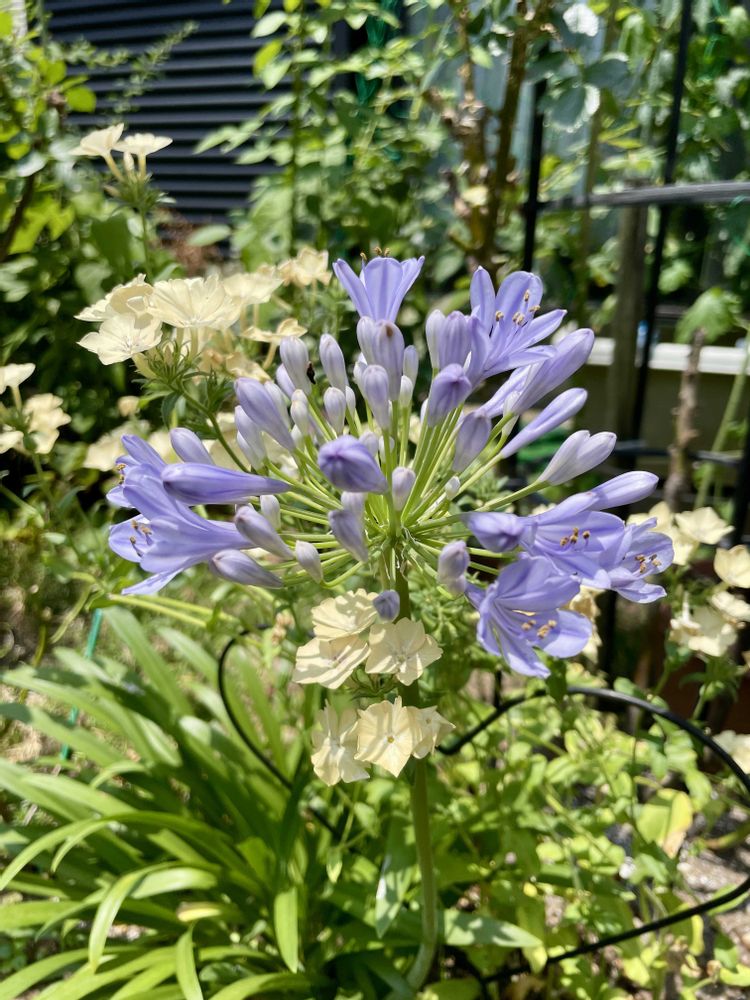 アガパンサスと白いお花が涼しそう🤍💜🤍