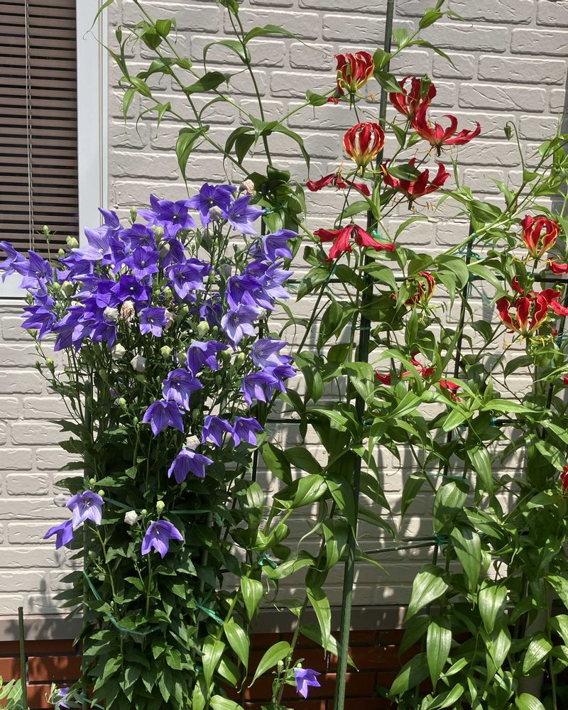 キキョウも背丈があるので,縛ってありましたが、たくさん花が咲いてましたよ😊