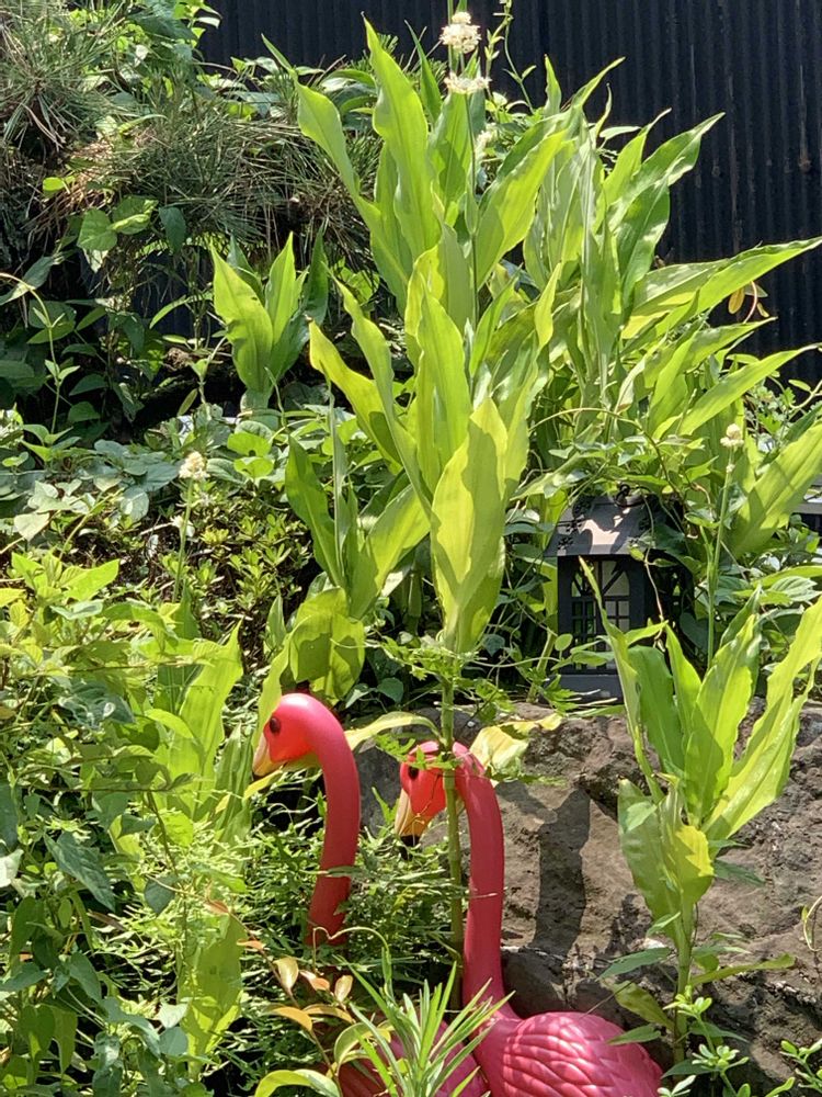 放ったらかしの庭にフラミンゴ🦩🦩さん達も笑うしかないようです