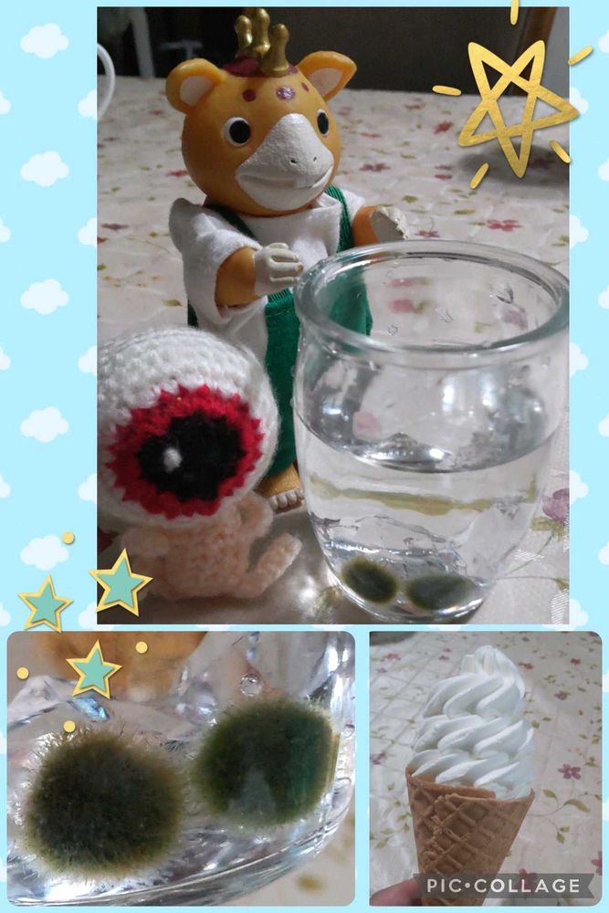 左のまりもちゃんがモスグリーンに見えますね😳やはり暑いのは苦手なのでしょうか💦