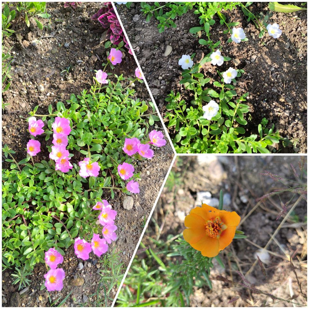 右下の黄色い花だけはマツバボタンで、毎年出てくれます🥹💦