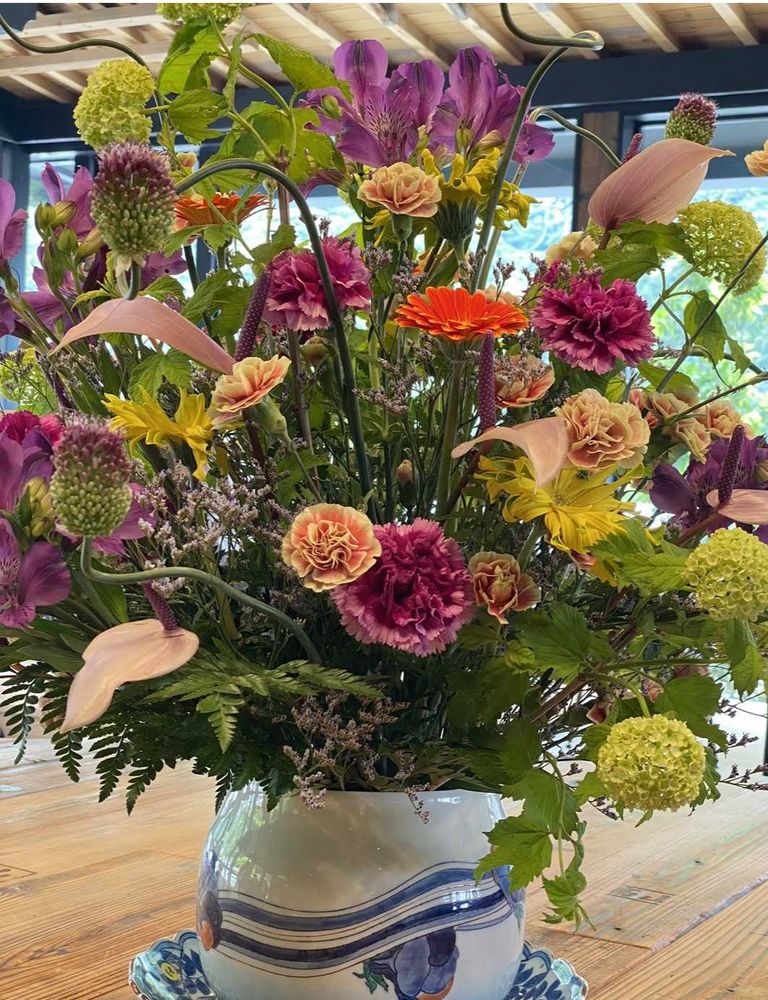 華やかなお花を眺めながら、ずっと仲良くしているママ友とのランチ🍀