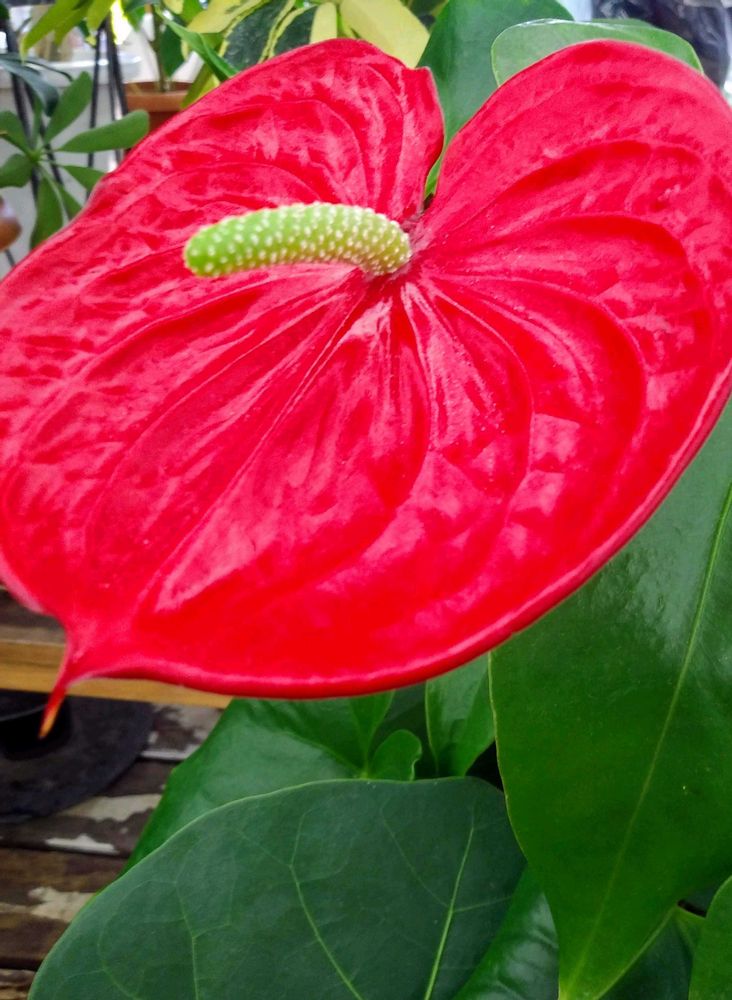アンスリウムは 葉も花も厚みがあり しっかりして どこか存在感がありますよねぇ➰🎶