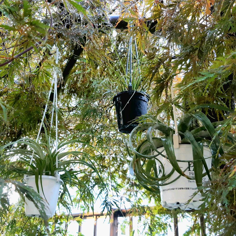 垂れモミジの枝に吊るしているエアプランツ、夏の暑さに負けずに元気に成長中~🌿