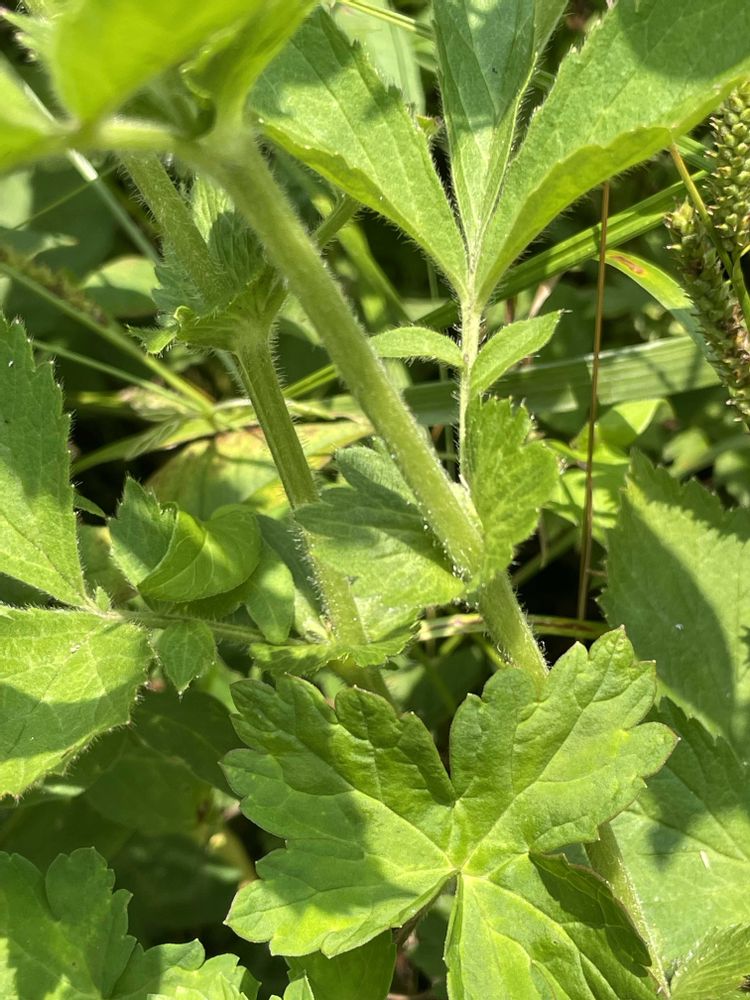 ダイコンソウより大型で、丈は60-100cm、茎などに長い毛が多く見られます。根生葉は3-11小葉からなる羽状複葉で、小さな葉片が混じります。頂小葉が大きく5-10cmの菱状卵形、鋭い歯牙があります。茎葉はふつう3子葉で、小葉の先が尖り、粗く大きな鋸歯があります。托葉は大きい。