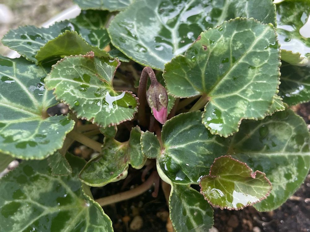 ⑤ 3年目になるF1ガーデンシクラメン🌸 葉っぱ☘️をよけると 蕾がありました😃 今朝 7/5 📱