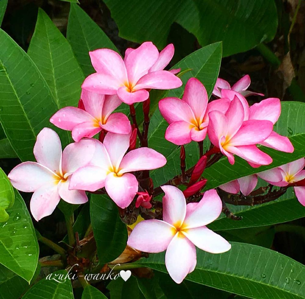 プルメリア(学名: Plumeria 英名: Plumeria, Frangipani, Temple tree, Temple flower)の花🌸🌿🌺