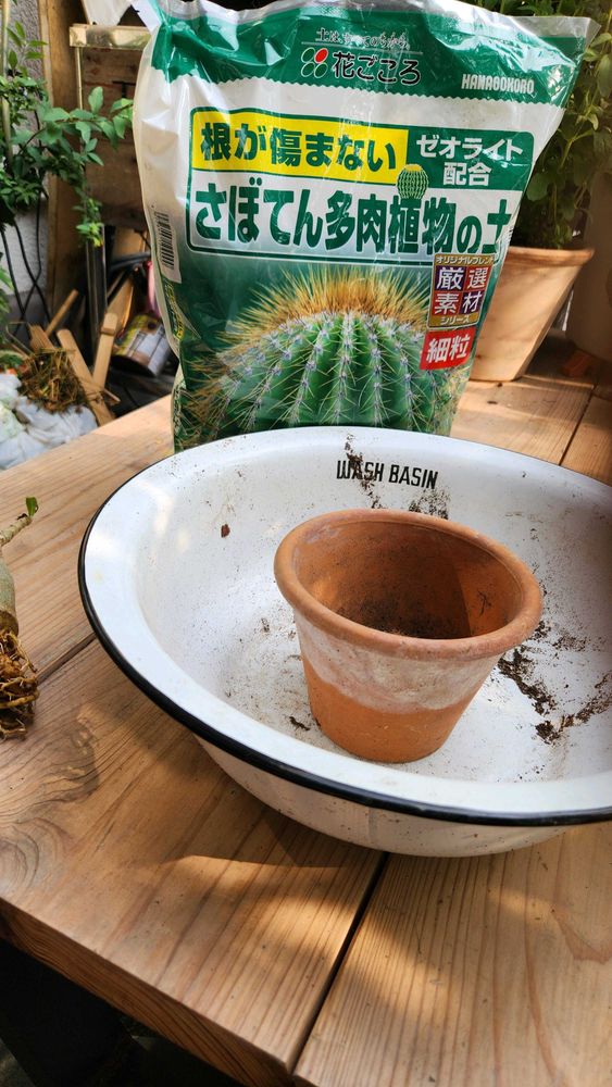 根っこも新しいのが出たので、サボテン用の土で植え替えました🌵