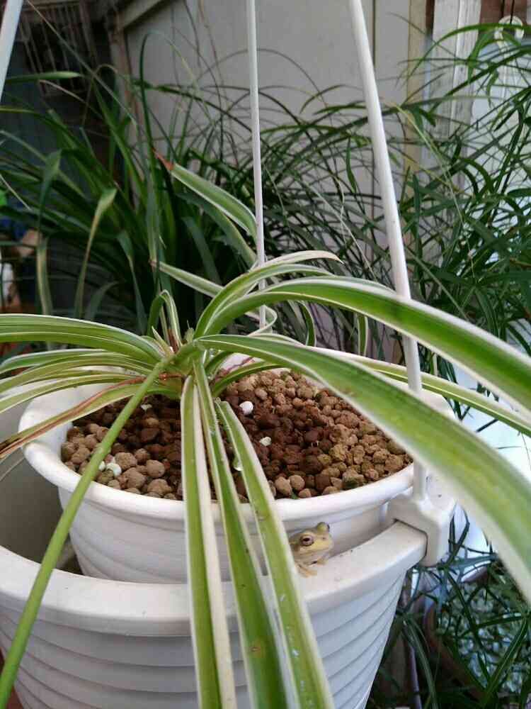オリヅルラン,観葉植物,アマガエルの投稿画像