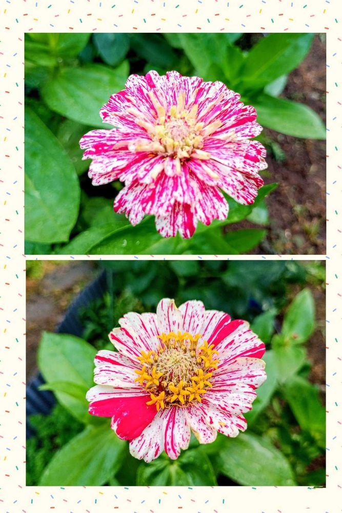 ✤ジニア❤️🤍🌱「ポップアート、ホワイト&レッド」2輪目がまた違う花色で😄