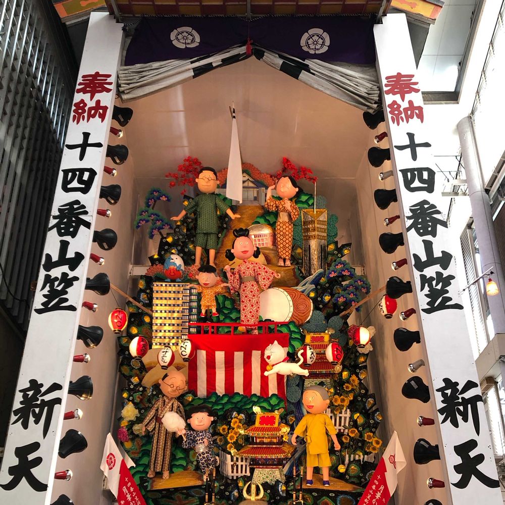 飾り山は表裏とも本格派のものもありますが、こういう商店街は見送りはみんなが親しめるものもつくられて、楽しいです。