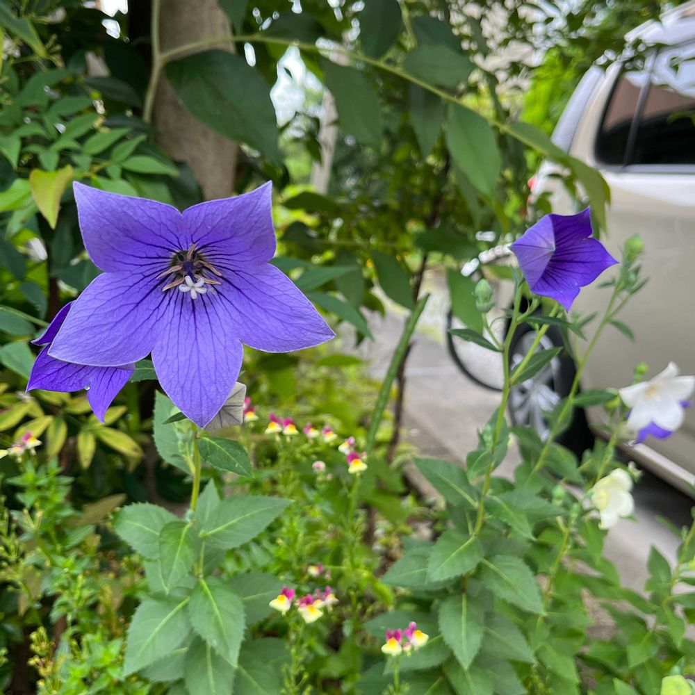 ご近所さんのお庭に紫と白のキキョウが咲いていました💜🤍💚 綺麗です😍🤩💕