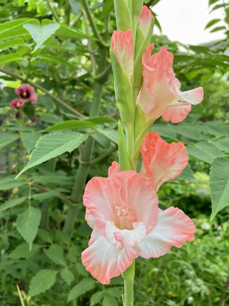 1️⃣皇帝ダリアの傍らで咲くグラジオラス