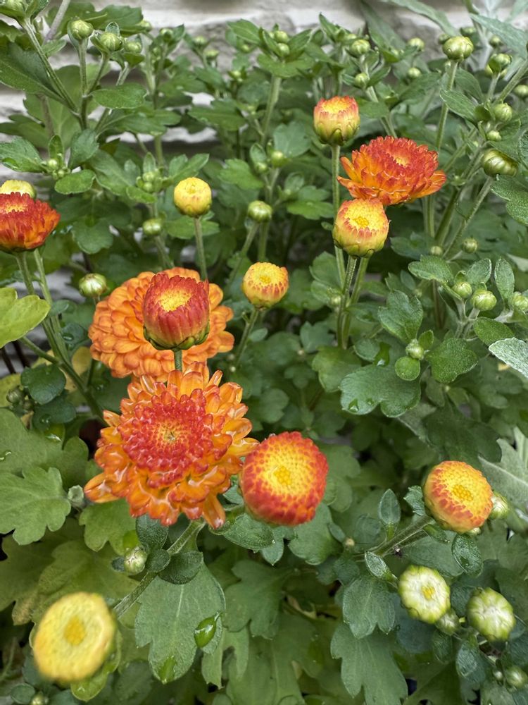 ガーデンマム、うちは昨年なぜか夏に黄色で咲いて、秋にまたオレンジが咲きました。そしてそのあと枯れてしまいました。