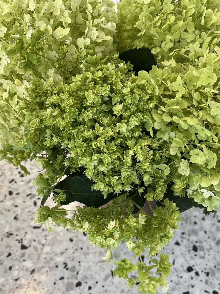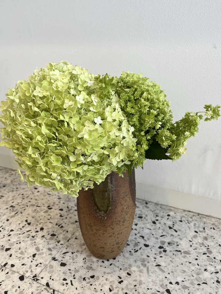 美容院へ庭のアナベルたちを手土産に(?)持って行ったら、キレイに生けてくれました💚
