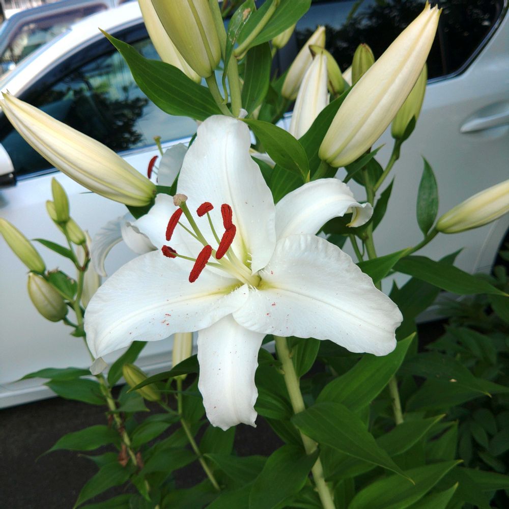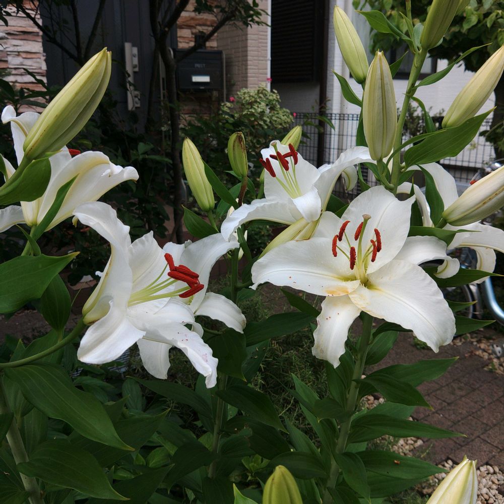 昨日からカサブランカから赤いユリが咲き始めました❤️🤍❤️