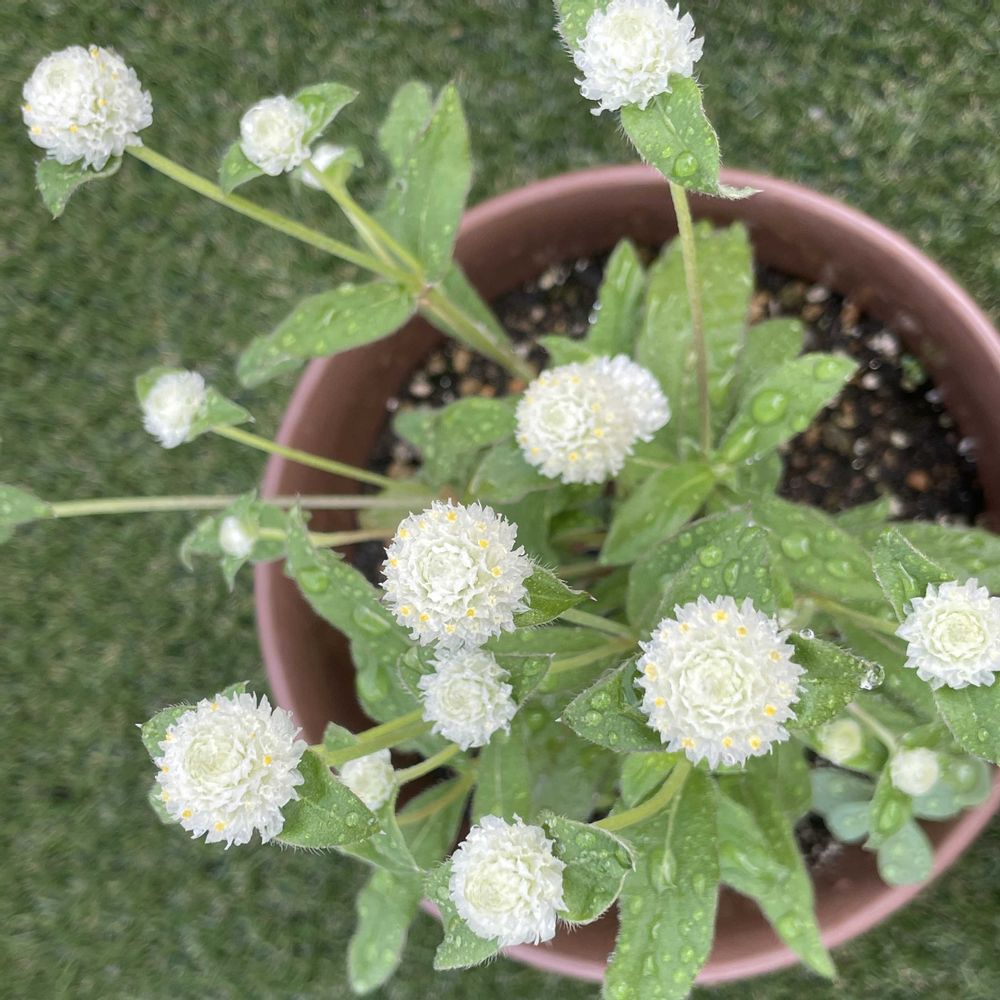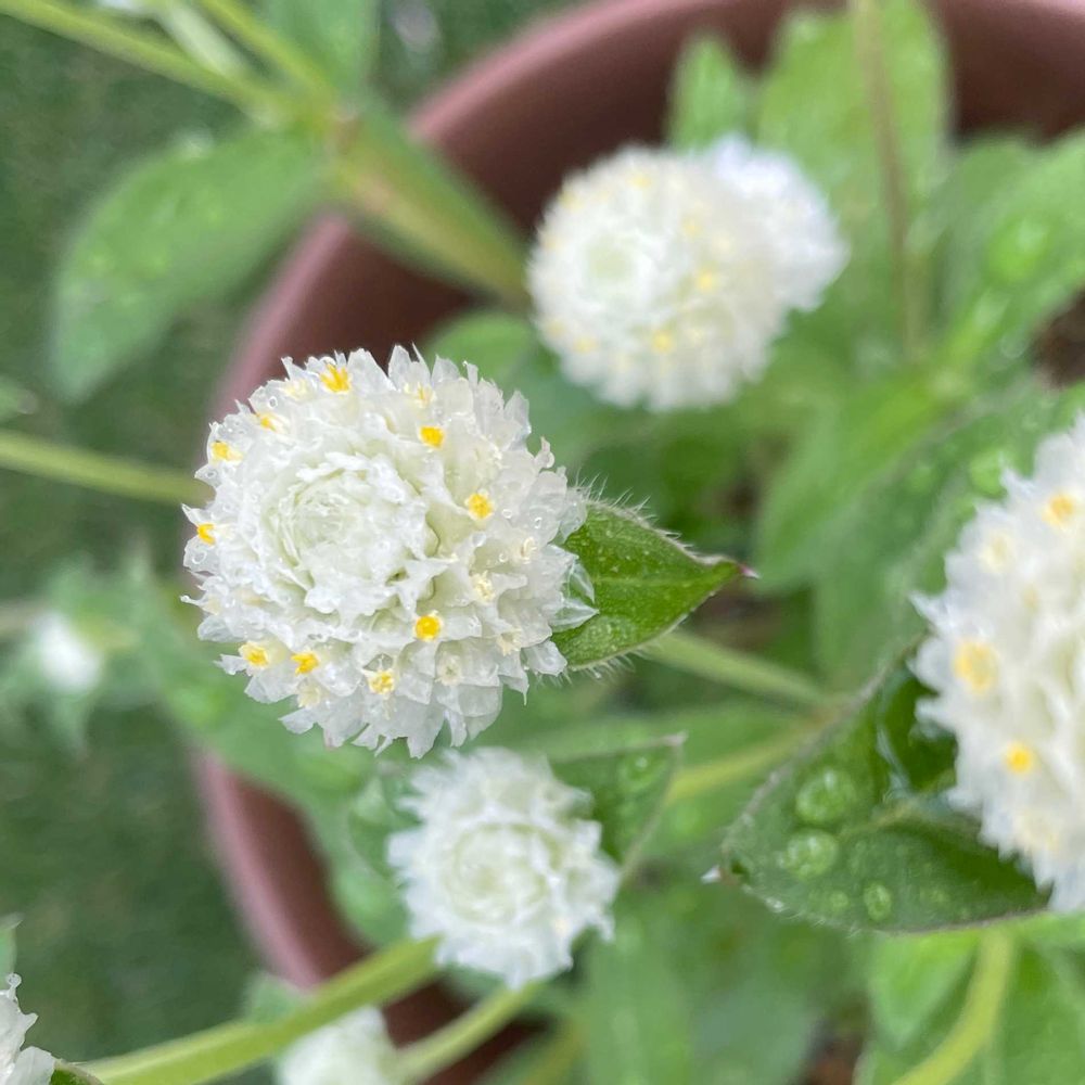 センニチコウ、ミッテの白。暑いから苞はパリパリなのかと思いきや、ふわっとしていて、癒されます。