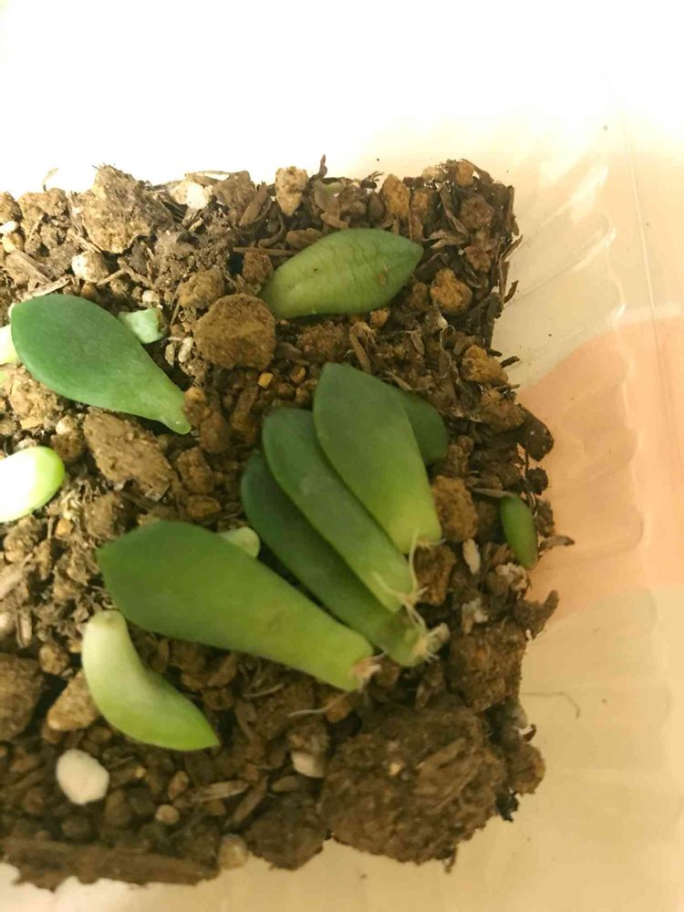 乾いた多肉植物用土の上に、並べて、半日陰の風通しの良い所で、時々、霧吹きで乾き過ぎないようにする。