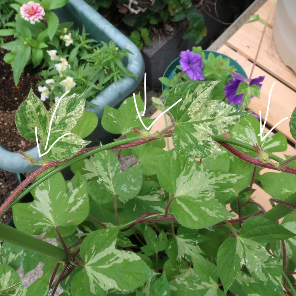 蕾らしきものが、電線に留まる雀の如くに何個かついてます