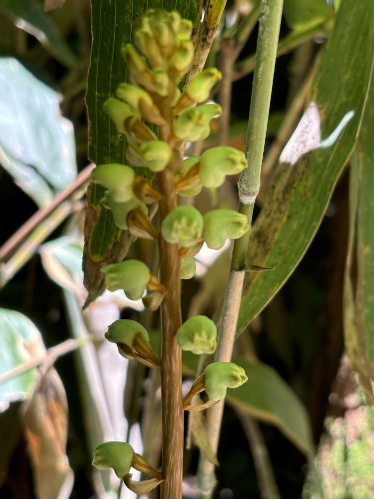 茎頂に総状花序を出し黄褐色の花を20〜50個付ける。