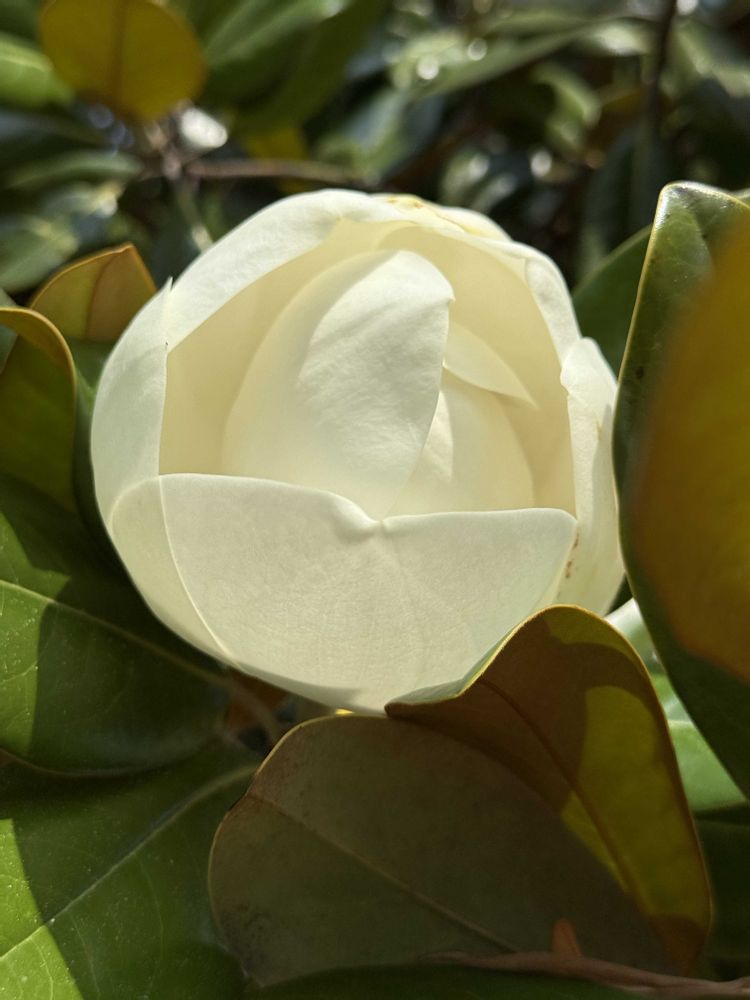 梅雨の頃、雨の中大木の上の方に咲くタイサンボクの花♡ー白く大きく清々しさを感じさせる好きな花です。
