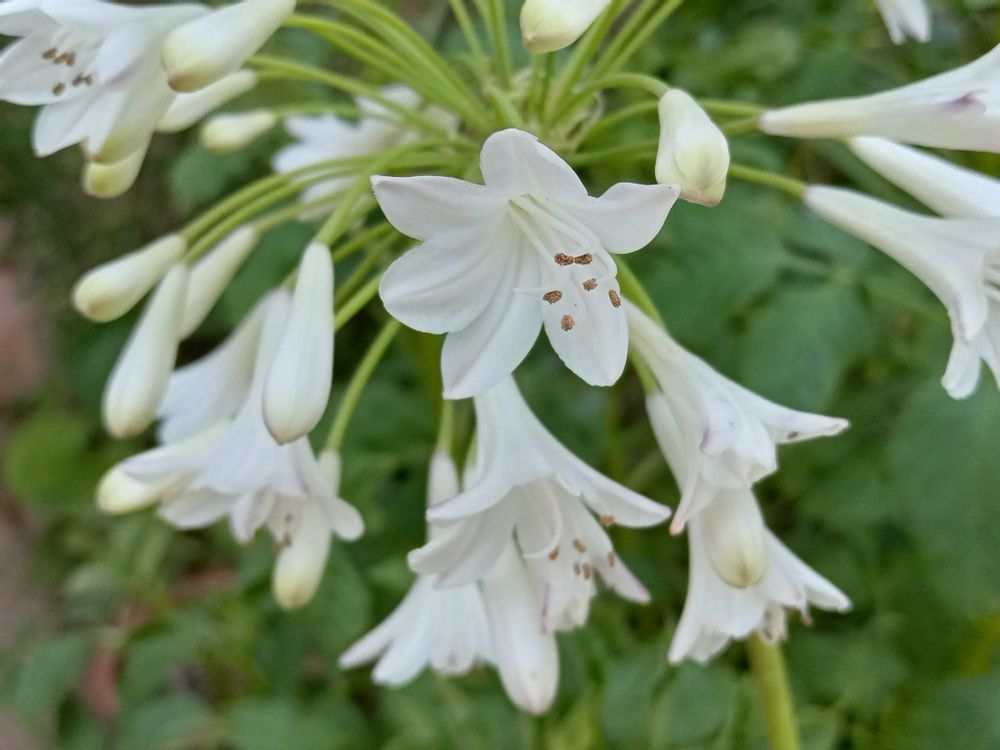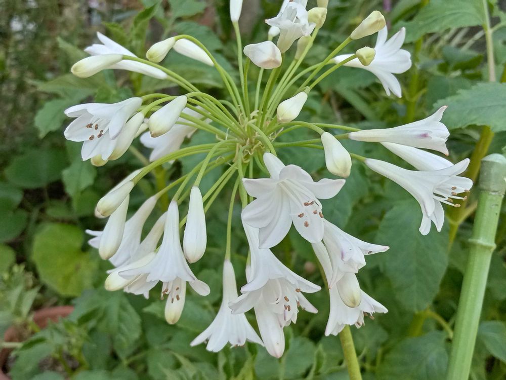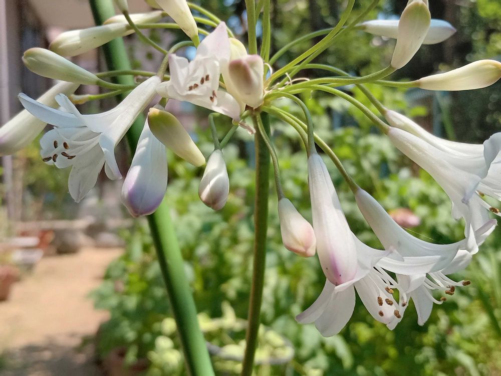白のアガパンサスが風に吹かれてユラユラ涼し気です🌿🤍🍃