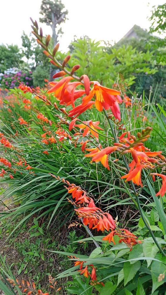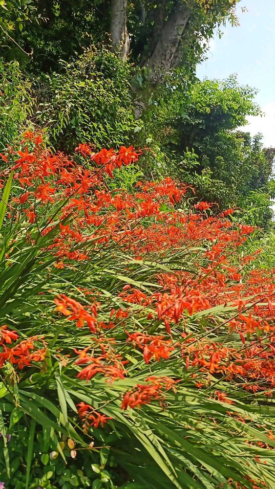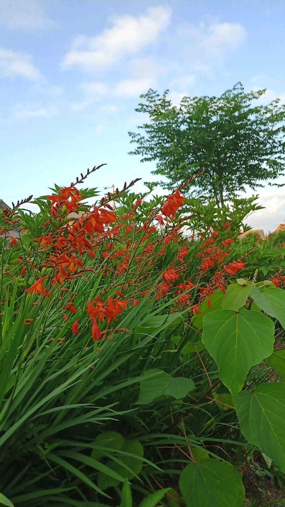 最近よく見かけるヒメヒオウギズイセン。鮮やかな赤と緑の組み合わせが目をひきますね。˶˃ᴗ˂˶