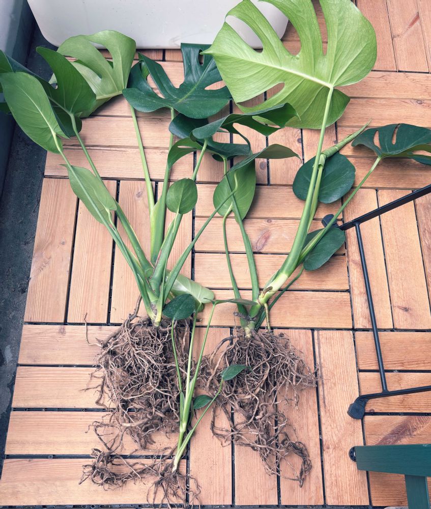 5月に植え替えたばかりなんですが成長が早く、気根がのびる場所がなくなり隣の株に刺さりはじめて💦