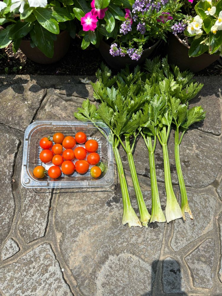 ⑶ 初めてセロリの苗を植えてみました🌱トマトもいつも枯らすので一本だけ中玉を植えたらよくなってくれます🍅