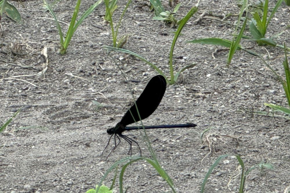 バルコニー/ベランダ,ヒマワリ,トンボ(ハグロトンボ)の投稿画像