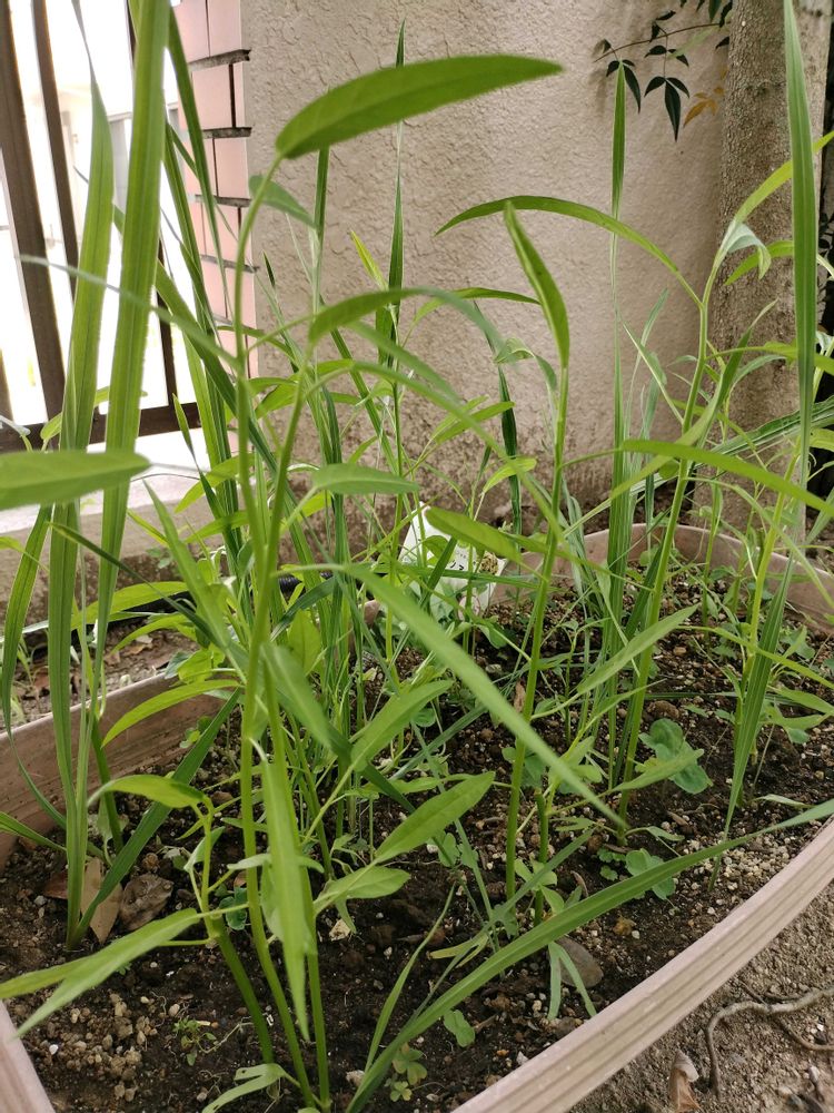 空芯菜を種まきして、ヒョロヒョロと育ってます。