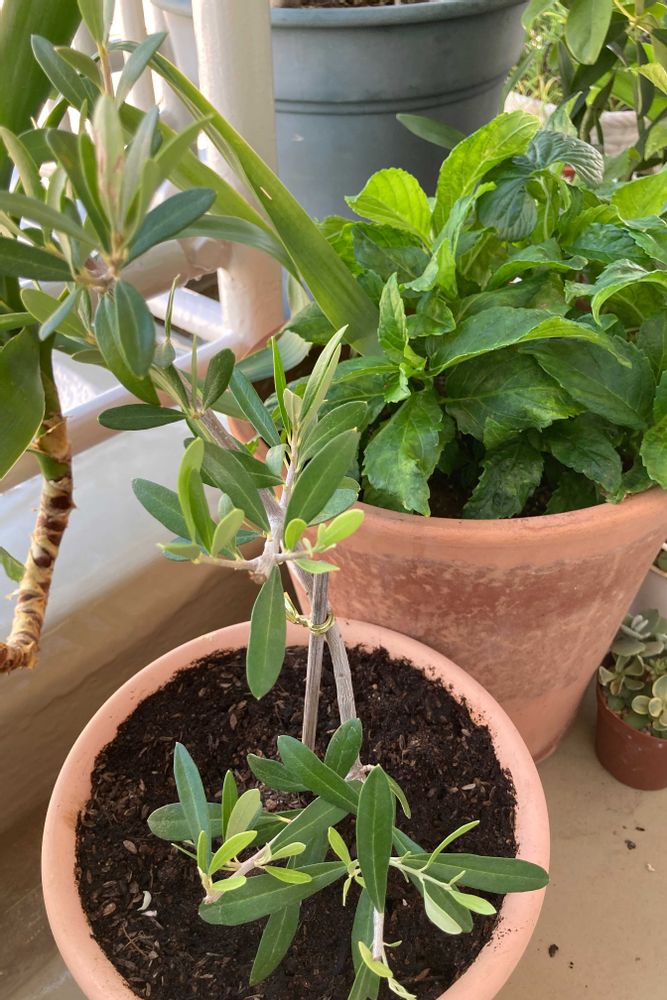 「オリーブの木」貰って来て一回り大きい鉢に植え替えました♡