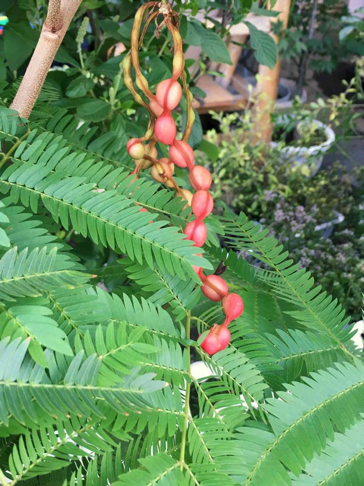 園芸店で見かけたネムノキの様な葉っぱの木に付いていた実!