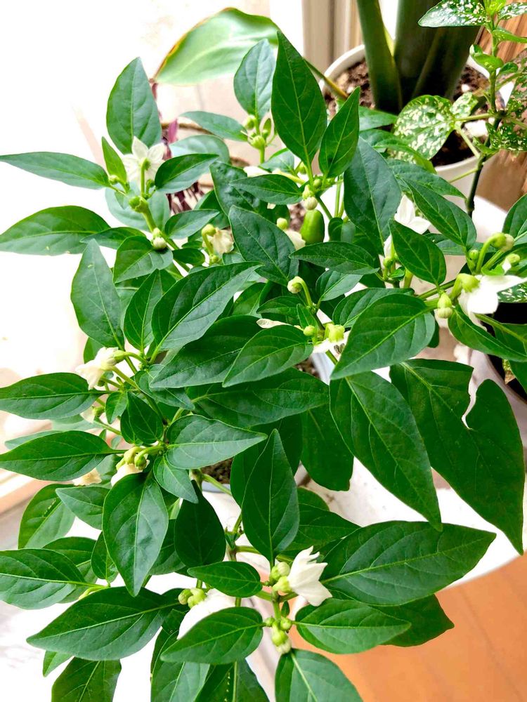 観賞用トウガラシの小さな鉢植えは、☀️直射に当たると弱って葉や実を落としてしまうし、半日陰に置くと湿度が高く、風通しも悪くなるせいか、元気なくなるのですよ😟