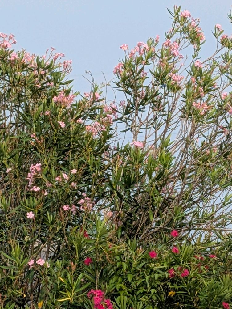 去年のキョウチクトウは綺麗かったですが今年は熱波が強烈だからか花弁もヘロヘロっぽいです😱