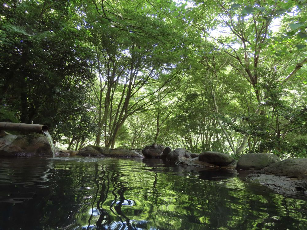 新緑の森の中の露天風呂は素晴らしい眺め✨🌿