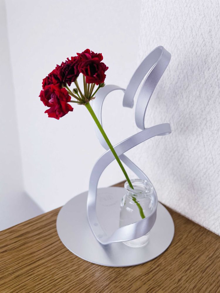 また、動きのある洒落た一輪挿しに、真っ赤なゼラニウムがステキですね〜🤗brand newですか🙄