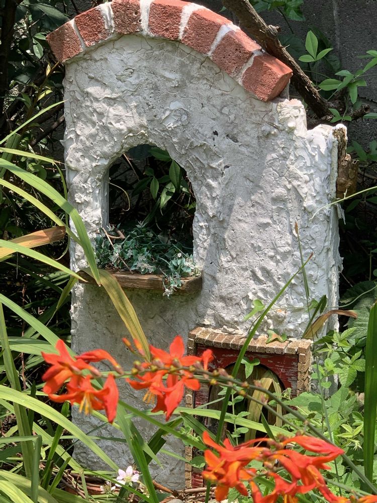 久しぶりに庭の奥の小人さんのおうちに行ってみました🩷京都は暑いので、避暑に出かけたみたいで留守でした🧡🧡ヒメヒオウギズイセンさんはビタミンカラーで、暑さに負けず、元気に咲いていました🧡🧡