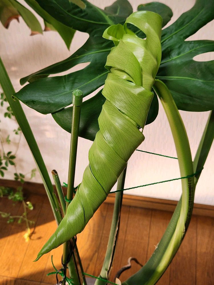 モンステちゃんの葉っぱこんなクルクルの新芽なのね🌿