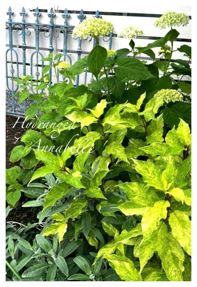 手前にノリウツギ(たぶん🤔)とトウティランを植えたら思った以上に大きくなってアナベルの花付きが悪かった😅