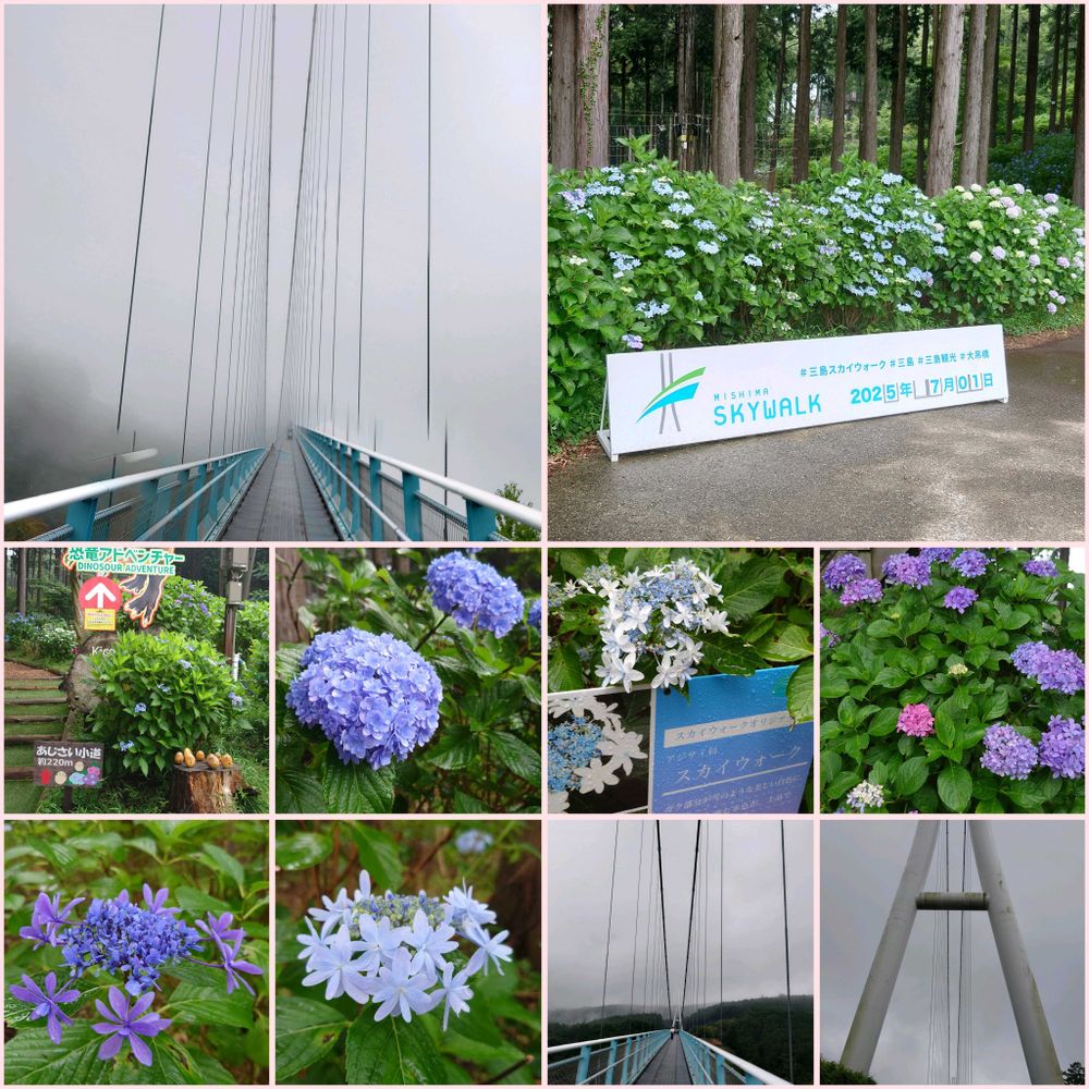 おはようございます🩷先日三島スカイウォークへ行ってきました🎵紫陽花まつり開催していて色んな品種見てきました🤗吊り橋行きは霧が〜💦💦帰りは景色見えました、晴れてれば富士山も見えるそうです、残念💨💨
